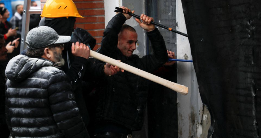 Personi i arrestuar është identifikuar si Lefter S. dhe ndalimi i tij u bë për veprat penale “Organizimi dhe pjesëmarrja në grumbullime e manifestime të paligjshme”, “Prishja e qetësisë publike”, “Pengimi i qarkullimit të mjeteve të transportit”, “Shkatërrimi i pronës” dhe “Prodhimi, mbajtja, blerja apo shitja pa leje e armëve të ftohta”.