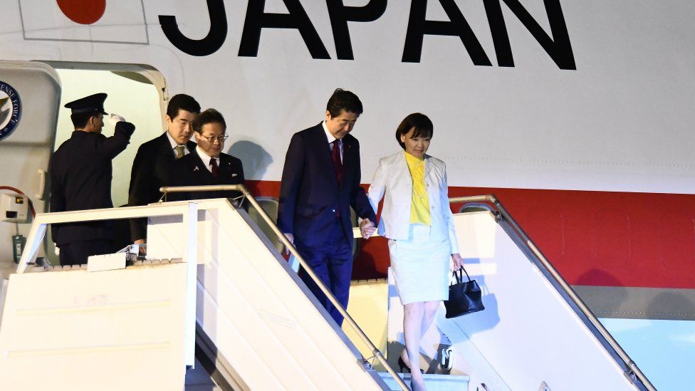 Kryeministri i Japonisë Shinzo Abe dhe gruaja e tij Akie Abe mbërrijnë nëBuenos Aires. Abe pritet ta vërë theksin tek rëndësia e tregtisë së lirë.