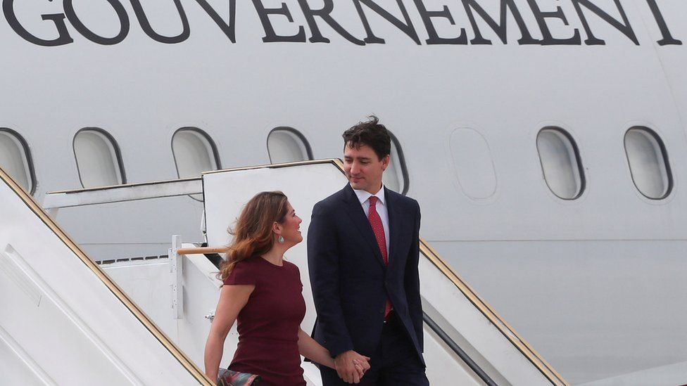 Kryeministri i Kanadasë Justin Trudeau dhe gruaja Sophie Gregoire Trudeaumbërrijnë pak përpara nisjes së samitittë liderëve të G20 në Buenos Aires. Trudeau pritet të nënshkruajë një pakttregtar me Meksikën dhe SHBA-në.