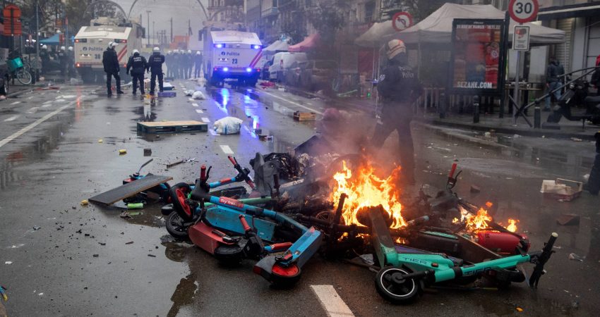 Forcat e rendit në Bruksel përdorën kamionçinat dhe gazin lotsjellës për të shpërndarë turmën me qindra persona. Kryebashkiaku i Brukselit ndërkohë bëri apel që njerëzit të mos dilnin nga shtëpitë.