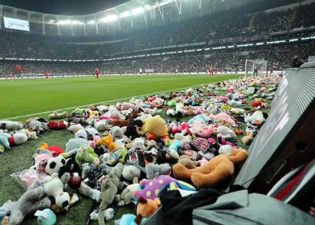 Tifozët e klubit turk të futbollit Besiktas mbushën fushën ku po luhej ndeshja me Antalyaspor me mijëra lodra në shenjë solidariteti për fëmijët që u prekën nga tërmetet shkatërruese në Turqi. “Vodafone Park” ishte i mbushur me 40,000 tifozë, shumë prej të cilëve iu përgjigjën kërkesës së klubit për të sjellë lodra në stadium. Ndeshja ishte shtyrë nga nëntori i vitit që shkoi për shkak të një sulmi terrorist në rrugën historike “Istiklal” të Stambollit.