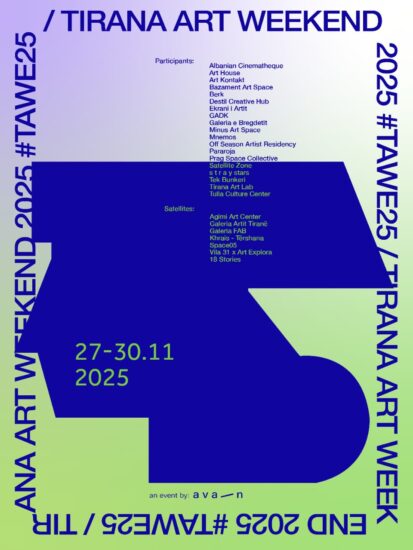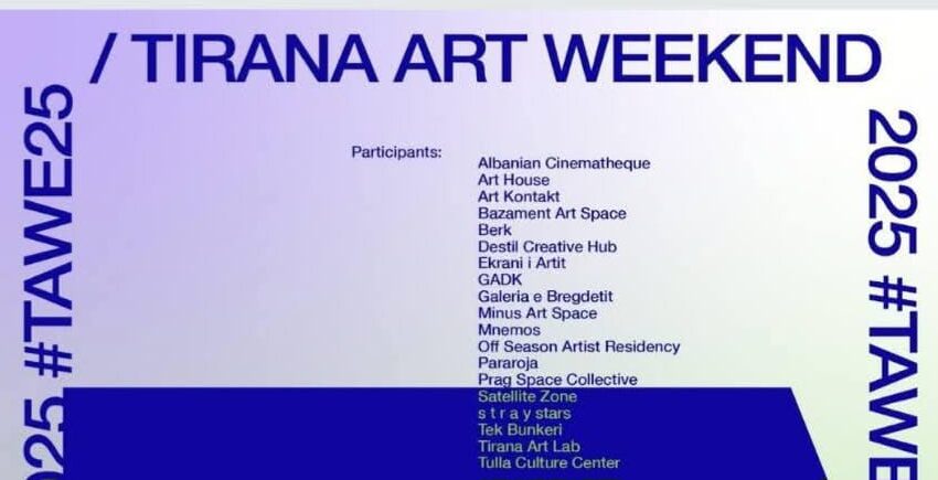 Nga Gazeta “SI”- Tirana Art Weekend 2025 (TAWE) pritet ta shndërrojë Tiranën në një qendër të artit pamor me një program të gjerë ekspozitash dhe aktivitetesh që do të shtrihen nga 27 deri më 30 nëntor në kryeqytet.