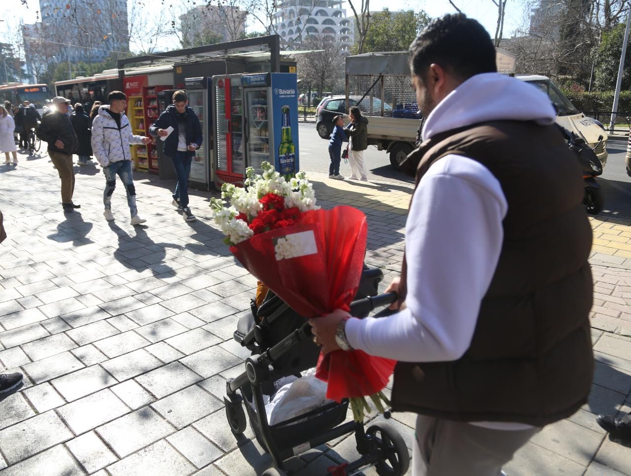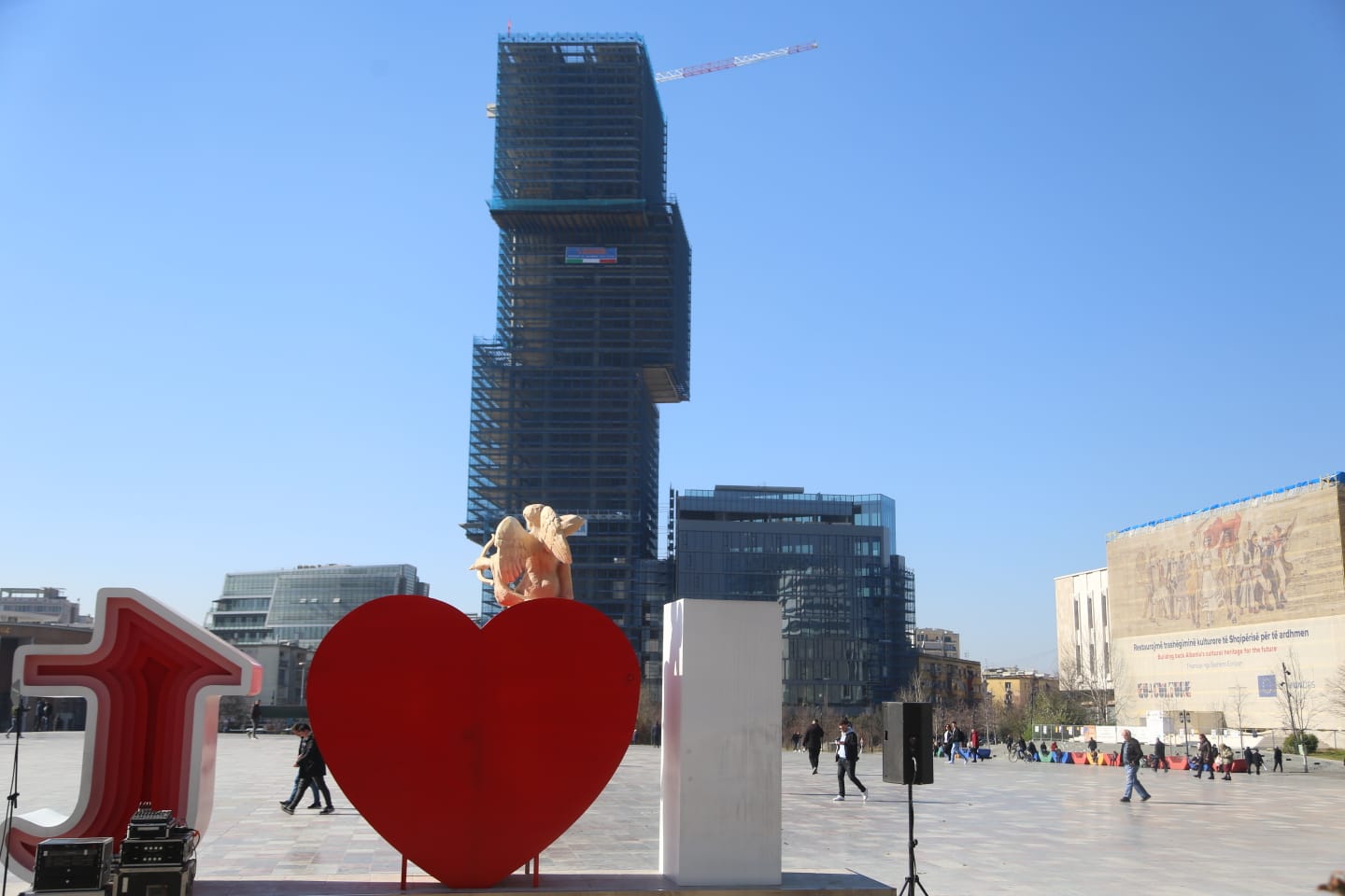 Tirana mbushet me trëndafila dhe zemra të kuqe
