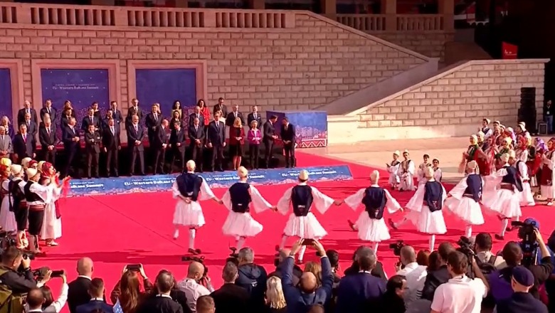 Teksa opozita po protestonte këtë të martë afër Hotel ‘Dajtit’, liderët europianë po shijonin një koncert para stadiumit ‘Air Albania’. Para se të nisin punimet e samitit, qeveria ka organizuar një koncert në nder të liderëve europianë, për t’i njohur ata sadopak me traditat shqiptare, me valle, opera dhe kërcime moderne.