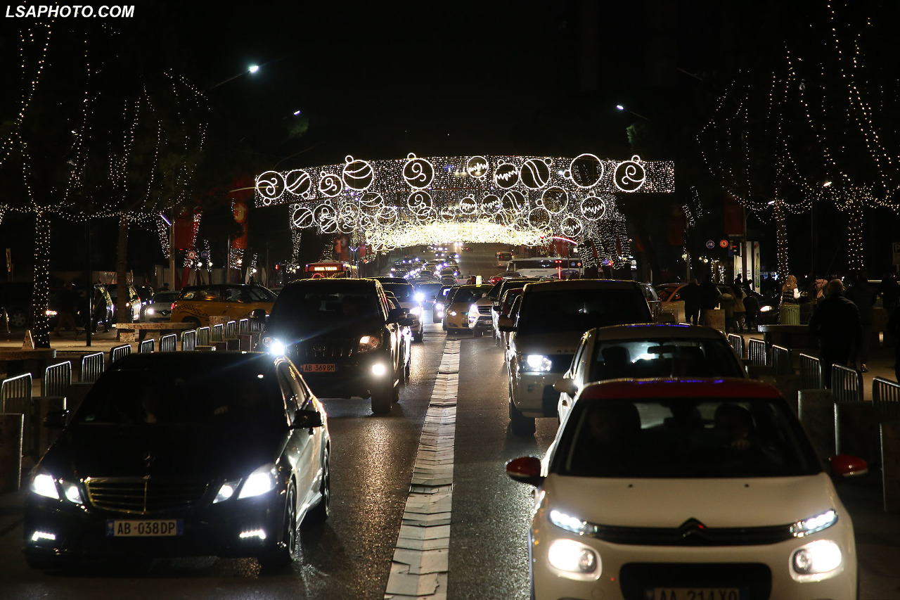 E gjithë Tirana është mbushur me drita dhe zbukurime shumëngjyrëshe në pritje të Vitit të Ri ku në darkë krijohet një atmosferë e bukur, siç do të krijohet edhe me datë 31 Dhjetor në ndërrimin e viteve duke qenë se janë hequr kufizimet e orareve.