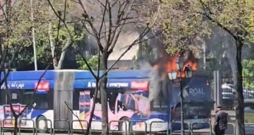 Gazeta Si- Një utobus i linjës “Unaza e Re” është përfshirë nga flakët mesditën e kësaj të premteje, teksa kalonte para godinës së Ministrisë së Jashtme në Tiranë. Fatmirësisht nuk raportohen persona të lënduar, përveç dëmeve materiale.