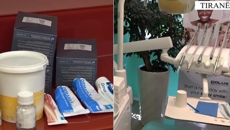 Në Rrugën e Kavajës, në ambientet e klinikës me administrator E. Z., që ofronte shërbime dhe punime stomatologjike dhe laboratorike si: terapi, ortodoncë, kirurgji, ura porcelani, proteza, implante dhe riparime të aparaturave dentare, policia gjeti dhe sekuestroi një sërë preparatesh dhe materialesh dentare të skaduara.