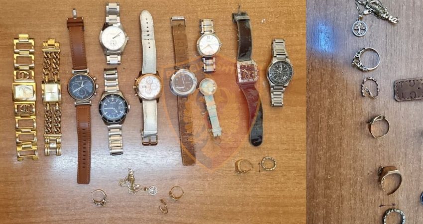 Gjatë kontrollit, shtetasit G. D. iu gjetën 11 ora të dyshuara të vjedhura, ndërsa shtetases N. Z. iu gjetën 5 unaza dhe 2 varëse floriri, të cilat u sekuestruan në cilësinë e provës materiale, së bashku me orët.