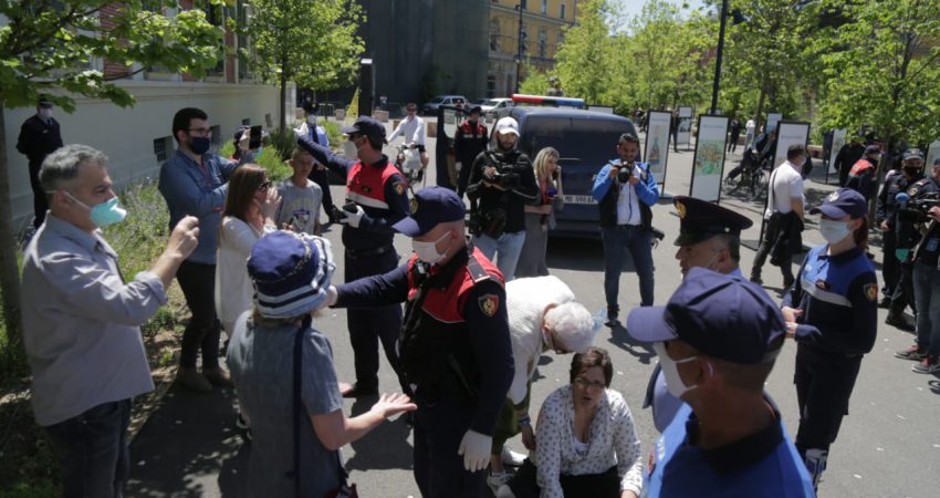 Disa aktivisë protestuan sot sërish në sheshin “Skënderbej” kundër masave kufizuese nga qeveria në këtë kohë pandemie ndaj Covid-19, por protesta është shoqëruar me tensione.