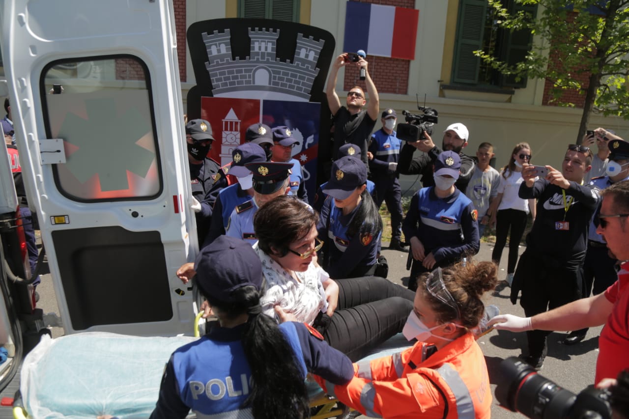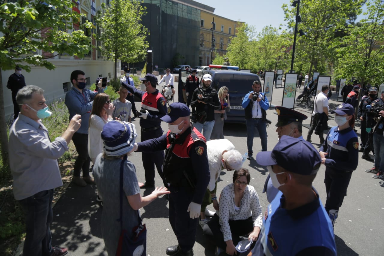 Forca të shumta policie kanë mbërritur për shpërndarjen e protestës, çka ka sjellë edhe përplasjen me protestuesit. Mësohet se disa prej tyre janë shoqëruar në komisariat, mes tyre edhe aktivisti Altin Goxhaj.