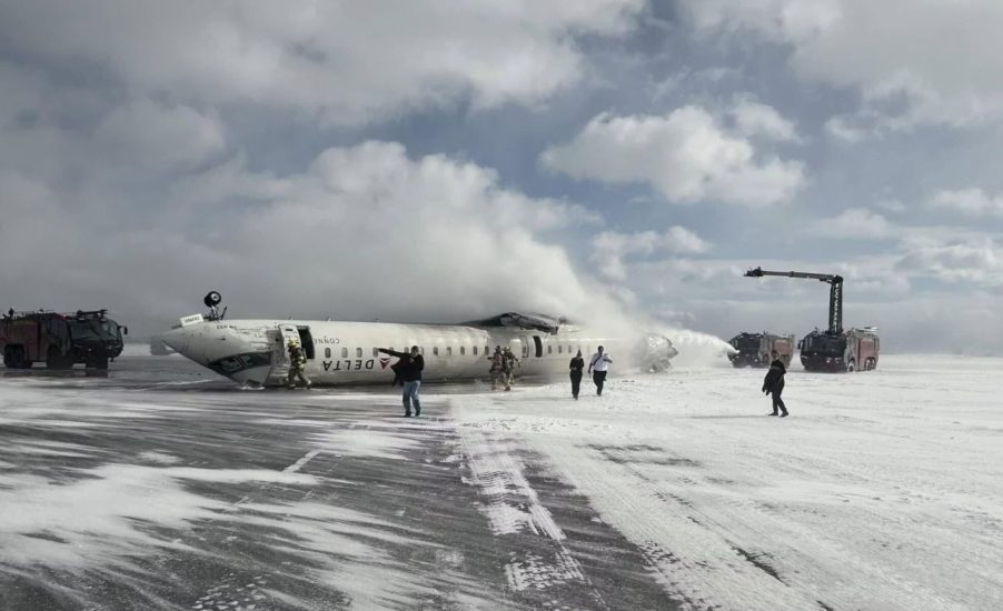 Gazeta Si – Një fluturim i “Delta Airlines” nga Minneapolis i SHBA-ve, u rrëzua gjatë uljes në aeroportin “Pearson” në Toronto, Kanada, duke u kthyer përmbys në një pozicion të pazakontë.