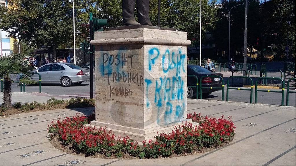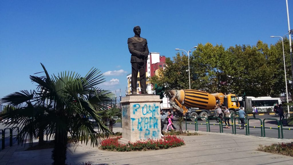 Shtatorja e ish-mbretit Zog I pushtohet nga grafitet e shumta. Mëngjesin e sotëm monumenti është mbushur me parrullat të shkruara me grafite ofenduese ndaj figurës së tij. “Tradhtari i kombit”, “Spiun i serbit” ishin disa nga parullat në ngjyrë blu dhe të zezë. Në pjesën e pasme të shtatores, te pllakt e mermerit shkruhej “Spiun i serbit”.