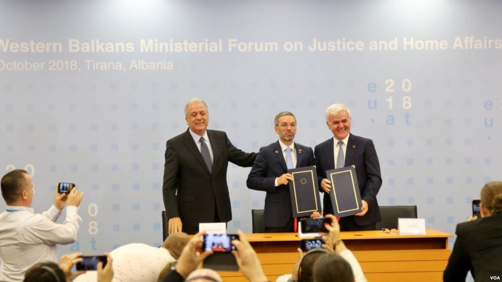 Marrëveshja për Bashkëpunimin me FRONTEX dhe Qeverisë shqiptare është nënshkruar me 5 tetor të vitit 2018. Ajo u firmos në Tiranë nga ministri i Brendshëm shqiptar Fatmir Xhafaj, Komisioneri Europian për Migracionin dhe Çështjet e Brendshme Dimitris Avramopoulos, dhe ministri i Brendshëm austriak Herbert Kick, vendi i të cilit kishte presidencën e radhës së Bashkimit Europian. Kjo ishte marrëveshja e parë e këtij lloji që BE-ja firmosi me vende të treta.