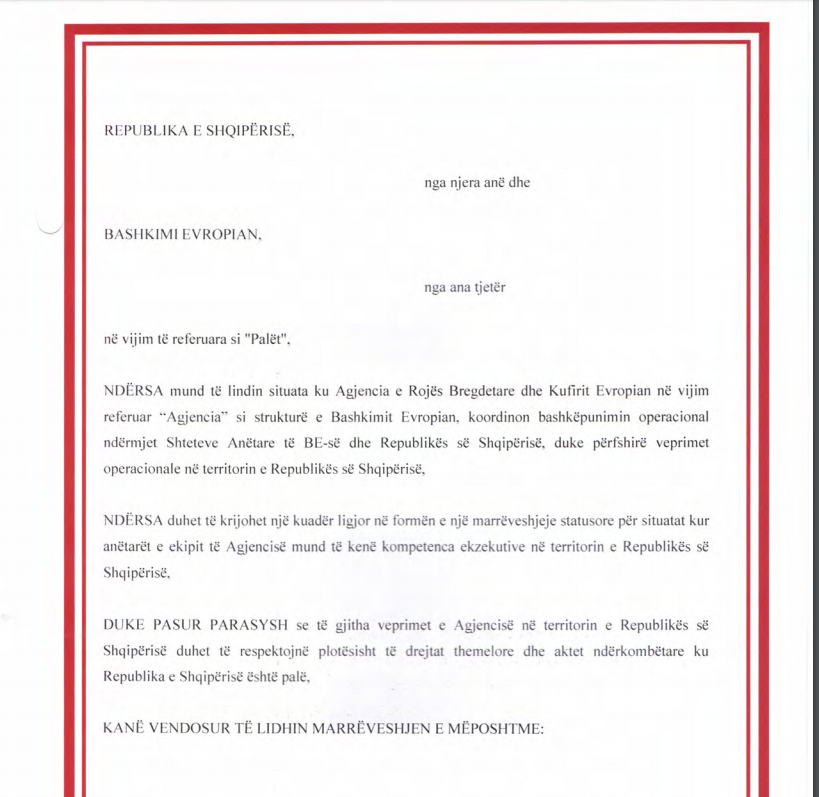 Në bazë të marrëveshjes së firmosur mes qeverisë shqiptare dhe FRONTEX parashikon që pjesëtarë të kësaj agjencie të kontrollojnë kufirin shqiptar me qëllim parandalimin e emigracionit të paligjshëm që kryesisht vijnë nga vendet e Azisë, Siria, Afganistani apo nga shtetet që kanë qenë në konflikte.