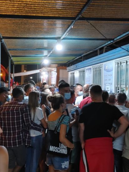 Por veç mungesës së kushteve minimale njerëzore, higjienike dhe të sigurisë, në tragetet e portit të Durrësit, masat anti-Covid nuk janë të njohura. Tek-tuk sheh ndonjë pasagjer me maskë, që sigurisht nuk ka asnjë efekt në një grumbullim të tillë, por ndoshta nga përgjegjësia apo frika e mban një të tillë.