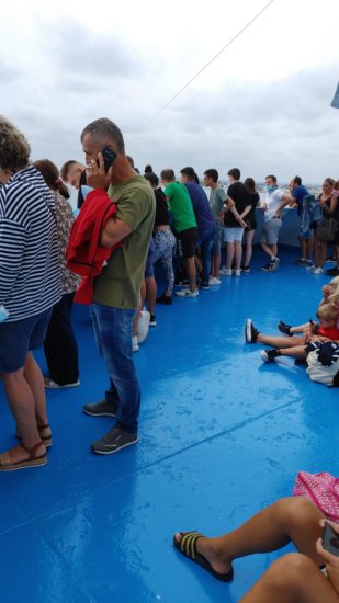 “Dhomat sigurisht janë të zëna por tragetet po mbajnë shumë më shumë nga kapaciteti i lejuar dhe i sigurt. Qindra njerëz të panjohur që shtrihen pranë njëri-tjetrit përgjatë gjithë korridorit. Aty ka bebe”, tregon i riu për Gazetën “Si”.