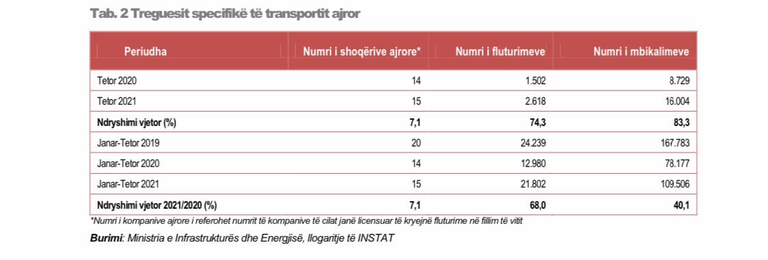 Për 10 mujorin pjesa më e madhe e sektorëve kanë kaluar nivelet e parapandemisë, me përjashtim të hekurudhave dhe transportit ajror e detar.