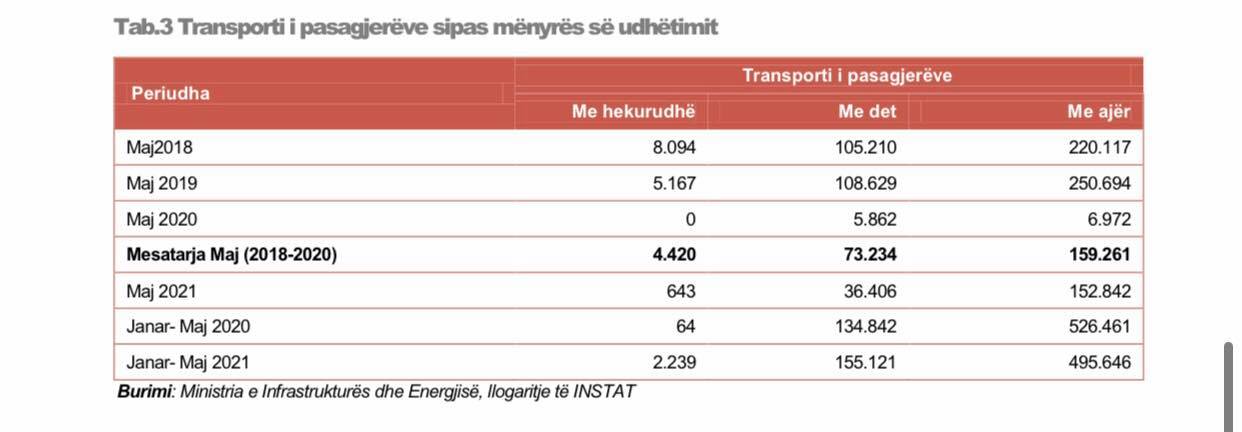Në muajin maj 2021, transporti ajror i pasagjerëve zë 80,5 % të transportit gjithsej.