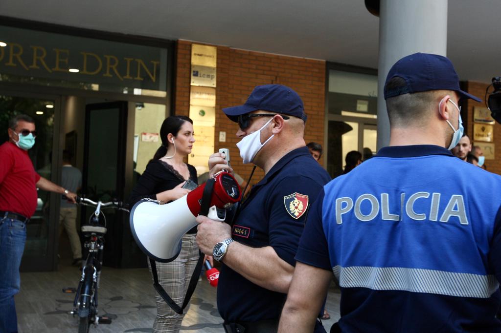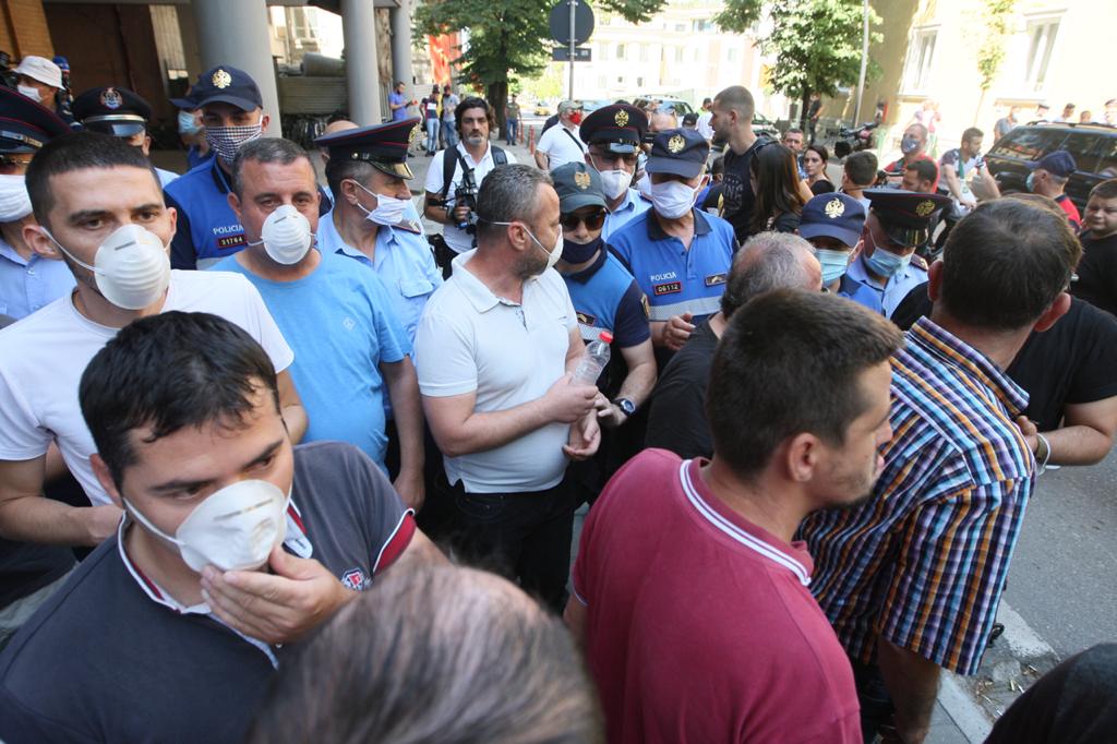 Policia ka bërë thirrje disa herë për shpërndarje, por protestuesit kanë këmbëngulur duke qendruar. Mandej janë shoqëruar për në komisariat pesë persona.