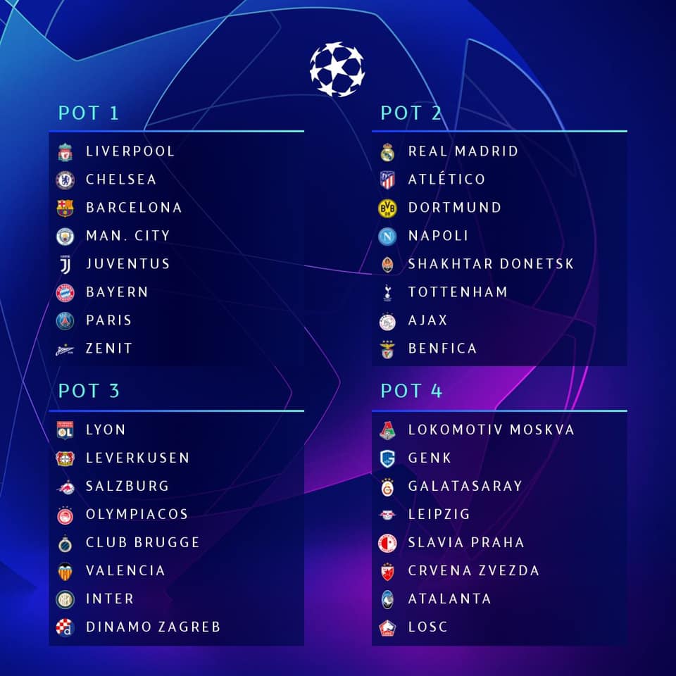 Grupet e Champions League do të krijohen duke tërhequr nga një ekip për çdo vazo. Sipas ndarjes së vazove pritet të ketë grupe shumë interesante, ku nuk përjashtohen përballje “big” që në fazën e parë.