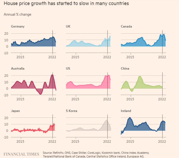 Kjo nisi me një rritje të menjëhershme të inflacionit, duke kapur kulmet në shumë vende dhe bëri që bankat qendrore të ndërrojnë kursin e politikës monetare, duke e shtrënguar atë. OECD parashikon se pagat në terma realë, do të bien vitin që vjen. Rezultati është se zjarri i tregut të banesave që nisi gjatë pandemisë, po fiket tani dhe tregu po ngadalësohet, që nga kriza financiare.