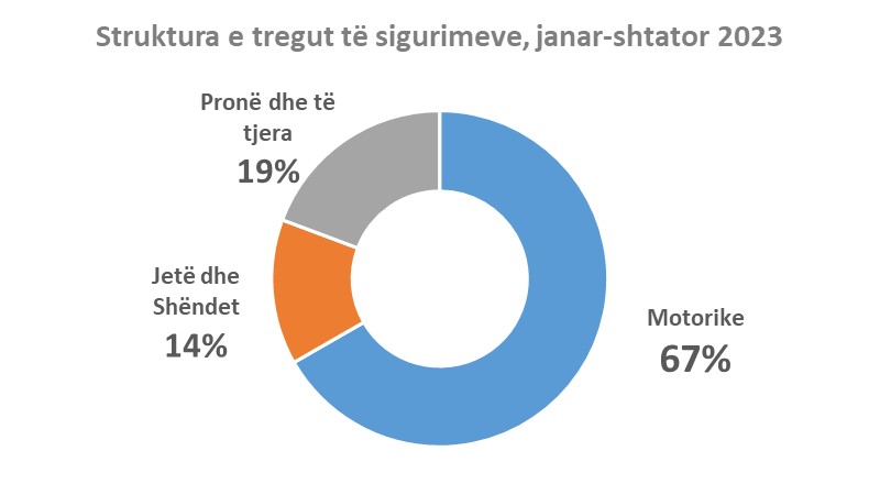 Sigurimet dominohen përsëri nga ato të jo-jetës, që mbajnë 92% të tregut, 7.9% ato të jetës dhe 0.07% risigurimet. Rreth 60% e totalit janë sigurime të detyrueshme, kryesisht motorike, mbi 10 mld lekë.