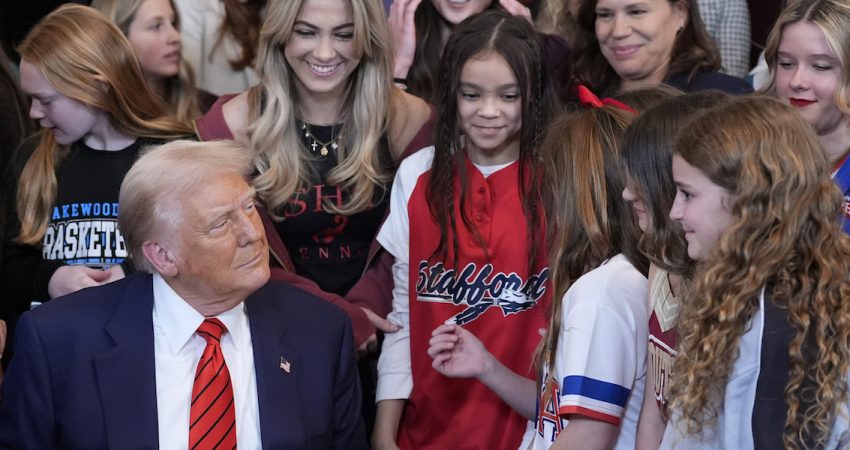 Pak para nënshkrimit të urdhrit, i rrethuar nga dhjetëra vajza, Trump tha se “tani e tutje, sportet e grave do të jenë vetëm për gratë”.