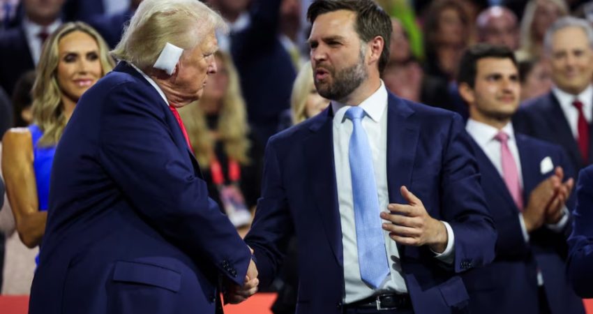Në Forumin Fiserv në Milwaukee, ish-presidenti dëgjoi rreth një orë fjalime ndërsa ishte ulur pranë kandidatit të tij kandidat dhe kandidatit për zëvendëspresident, senatorit të Ohajos, JD Vance, vendi i të cilit për zgjedhjet e nëntorit u shpall vetëm disa orë më herët.