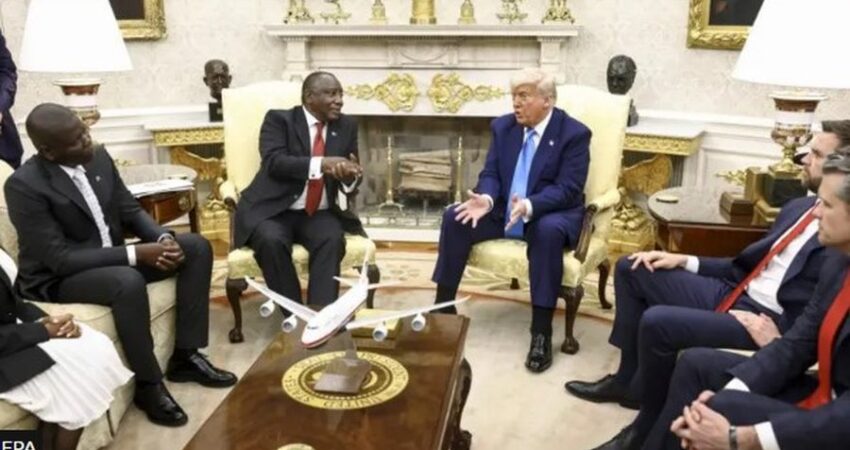 Trump i drejtoi të pranishmit në dhomë drejt një televizori, ku u shfaq një dokumentar i politikanit jugafrikane, Julius Malema, i cili këndon një këngë, për të cilën përfshihet edhe vargu “qëlloni Boerët”, që i referohet fermerëve të bardhë në vend.