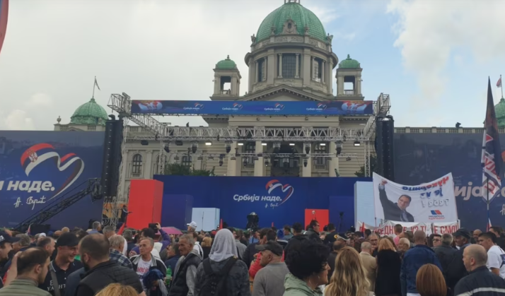 Në qendër të Beogradit, të premten u mbajt tubimi i organizuar nga Partia Progresive Serbe (SNS) në pushtet, në kohën kur, me ftesën e opozitës, dhjetëra mijëra njerëz po protestojnë ditëve të fundit, të pakënaqur me reagimin e qeverisë ndaj vrasjeve masive që tronditën vendin.