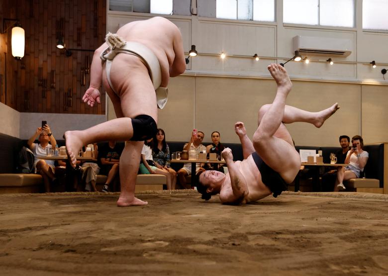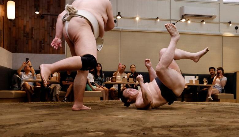 Turistët në Tokio paguajnë 76 dollarë për të ngrënë kotoleta derri dhe të shikojnë ose të bëjnë ndeshje me mundës në një ring sumo.