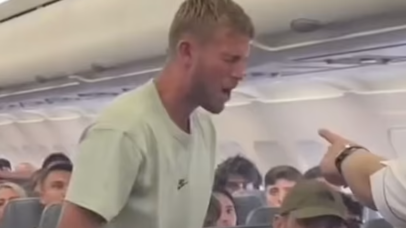 Burri i paidentifikuar, që besohet të jetë nga Britania e Madhe, shihet duke u bërtitur pasagjerëve të tjerë dhe ekuipazhit të kabinës në korridorin e avionit ndërsa ai donte të largohej nga avioni.