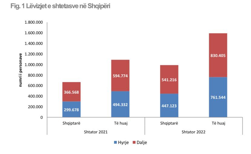 Sipas INSTAT, në nëntëmujorin e vitit 2022, hyrjet dhe daljet e shtetasve shqiptarë dhe të huaj nga pikat ajrore është rritur me 83.9 %, krahasuar me të njëjtën periudhë të një viti më parë;