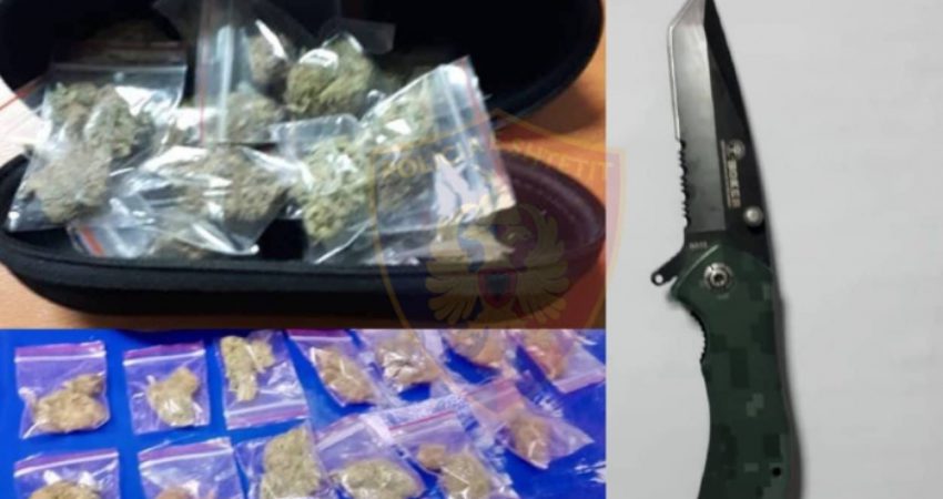 Por në momentin e kontrollit të mjetit tip “BMË”, policia i ka sekuestruar dy doza lëndë narkotike kanabis dhe 3 armë të ftohta (thika).