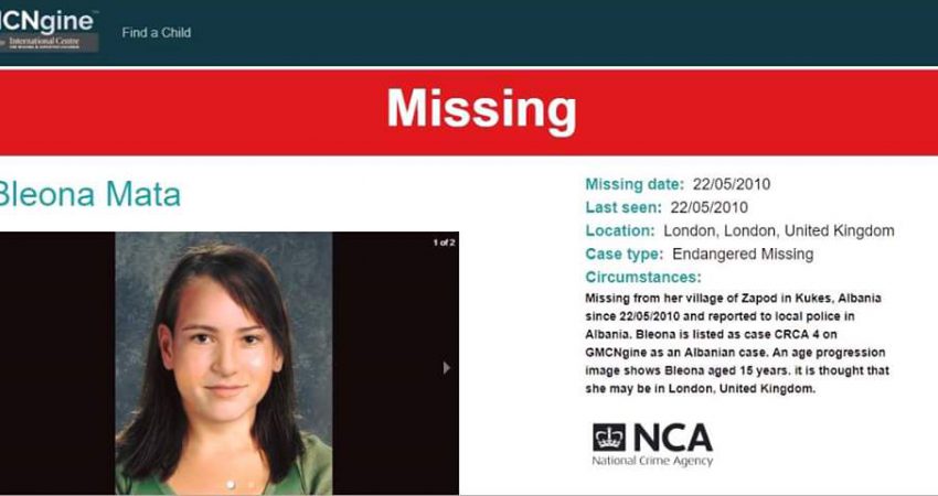 Policia britanike, Rrjeti Global i Fëmijëve të Humbur dhe Qendra Kombëtare për Fëmijët e Humbur në Shqipëri, kanë hapur kërkimet për Bleona Matën në Mbretërinë e Bashkuar.