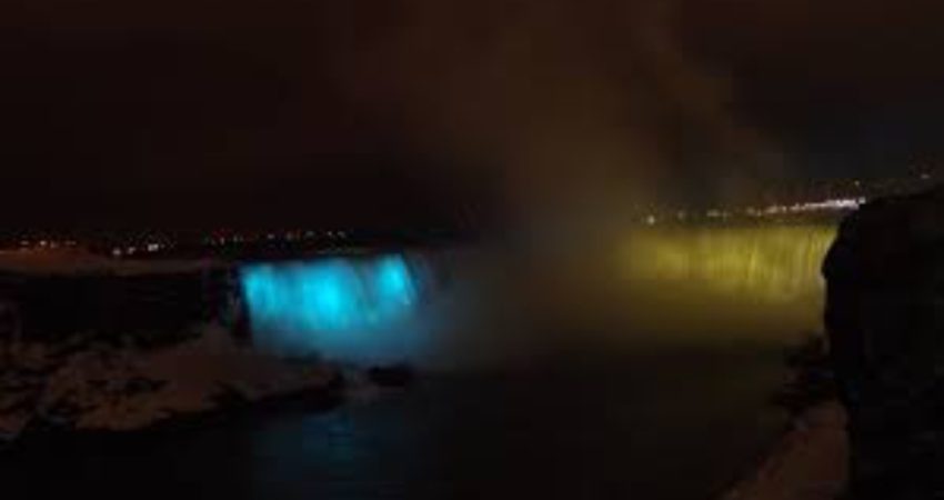 Në mbështetje të Ukrainës, Ujëvara e Niagarës u ngjyros në njërën anë blu dhe në tjetrën të verdhë.