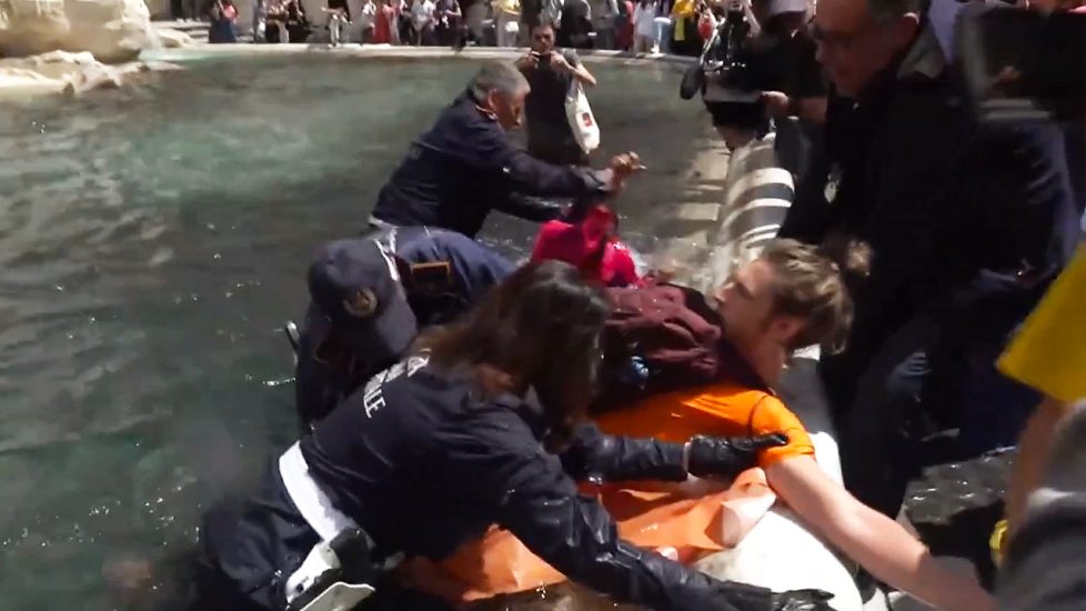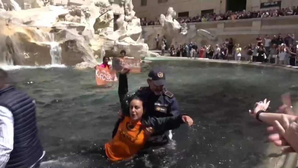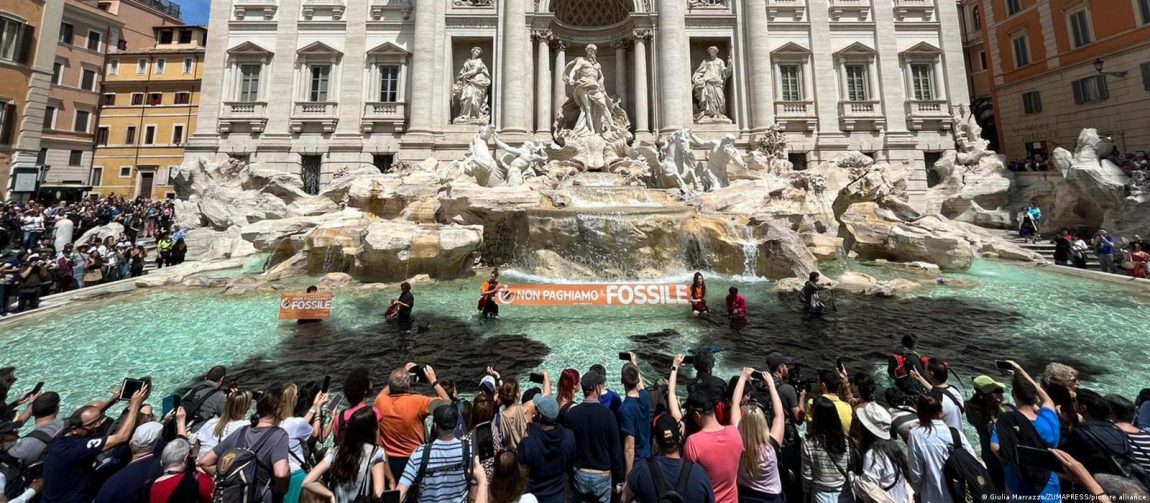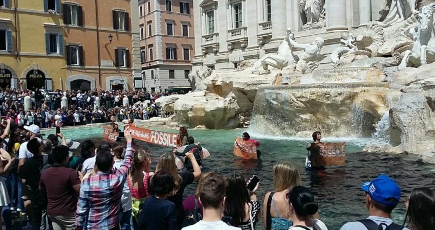 “Ne nuk paguajmë për fosilet, vendi ynë po vdes“, ishte thirrja që shoqëroi një sulm të ambientalistëve ndaj simbolit të Romës, shatërvanit të famshëm “Fontana di Trevi”.