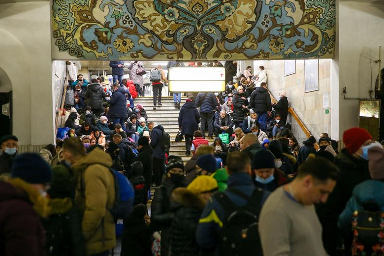 Ukrainasit u strehuan në metro për të shmangur sulmet e pritshme ajrore nga Rusia, e cila ndërmori një sulm masiv nga toka, deti dhe ajri. Shtetet europiane e kanë konsideruar sulmin më të madh që nga Lufta e Dytë Botërore./Reuters/