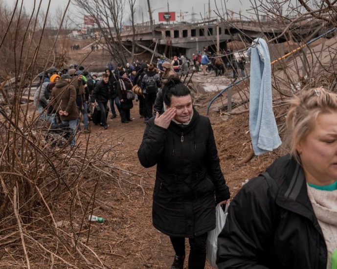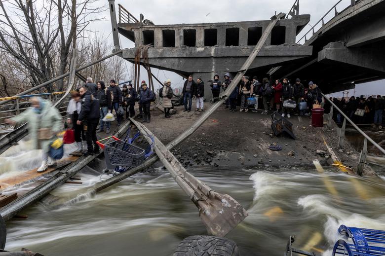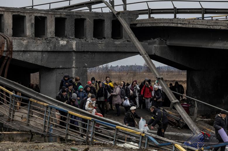 Qindra njerëz dolën nga Irpin të hënën për t’u shpëtuar forcave ruse, që përparonin drejt kryeqytetit ukrainas Kiev. Në Irpin kanë mbetur vetëm disa banorë, në një qytet të dëmtuar rëndë nga bombardimet e fundit./Reuters/