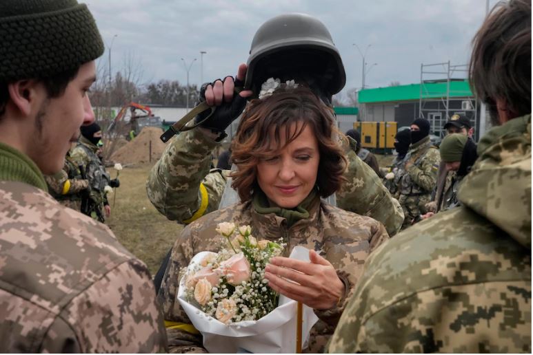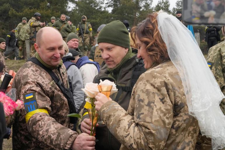 Lesia Ivashchenko la punën e saj kur lufta me Rusinë filloi muajin e kaluar dhe iu bashkua forcave të mbrojtjes territoriale për të mbrojtur zonën e saj në periferi të Kievit. Ajo nuk e kishte parë partnerin e saj, Valerii Fylymonov, që nga fillimi i pushtimit rus deri të dielën kur dyshja u martuan zyrtarisht.