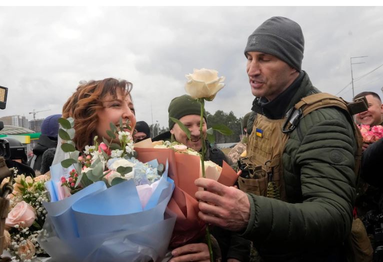 Kryetari i bashkisë së Kievit Vitali Klitschko dhe vëllai i tij, boksieri Vladimir, erdhën për të uruar të porsamartuarit.