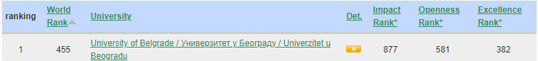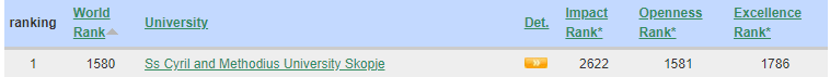 Nga vendet e rajonit, Universiteti i Ss Cyril and Methodius University në Shkup u rendit në vendin e 1.580-të. Universiteti i Malit të Zi, në vendin e 2.029-të dhe Universiteti i Beogradit në Serbi, me pozicionimin më të mirë në rajon, në vend të 455-të.