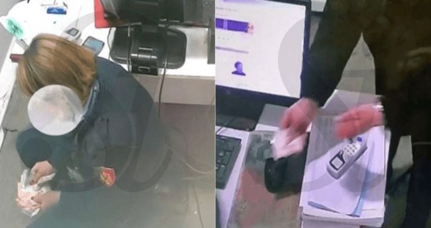 Njëra nga policet, shihet duke numëruar ryshfetin që ka përftuar nga qytetarët, duke shpërdoruar detyrën, ndërsa monitorimi i tyre është kryer nga kamera përgjimi, të vendosura nga prokuroria.