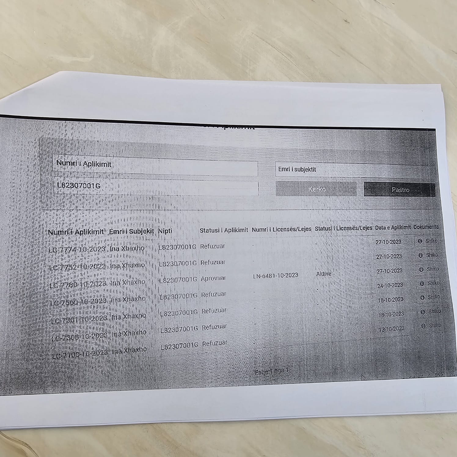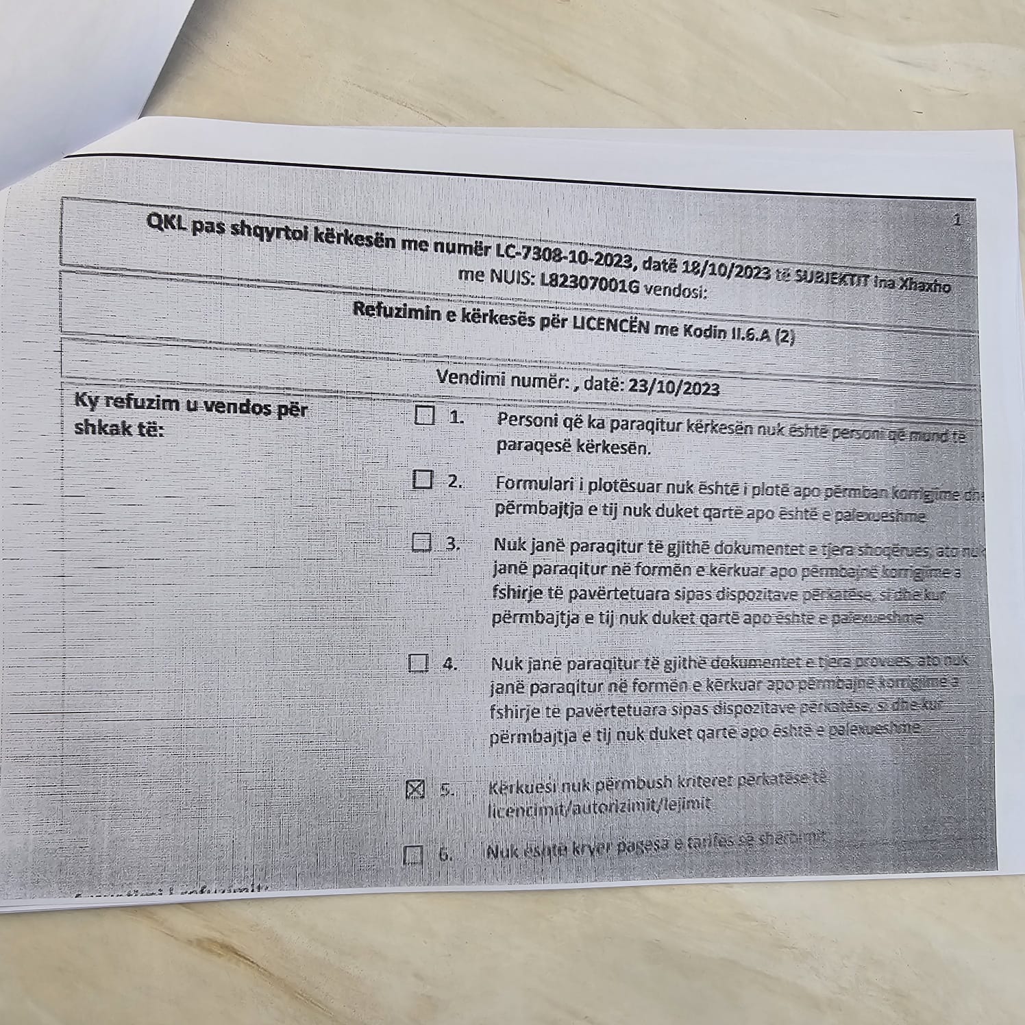 Sipas dokumentit të Qendrës Kombëtare të Licencimit, fillimisht kërkuesit iu refuzua 6 herë marrja e licencës me argumentin se nuk përmbush kriteret përkatëse.