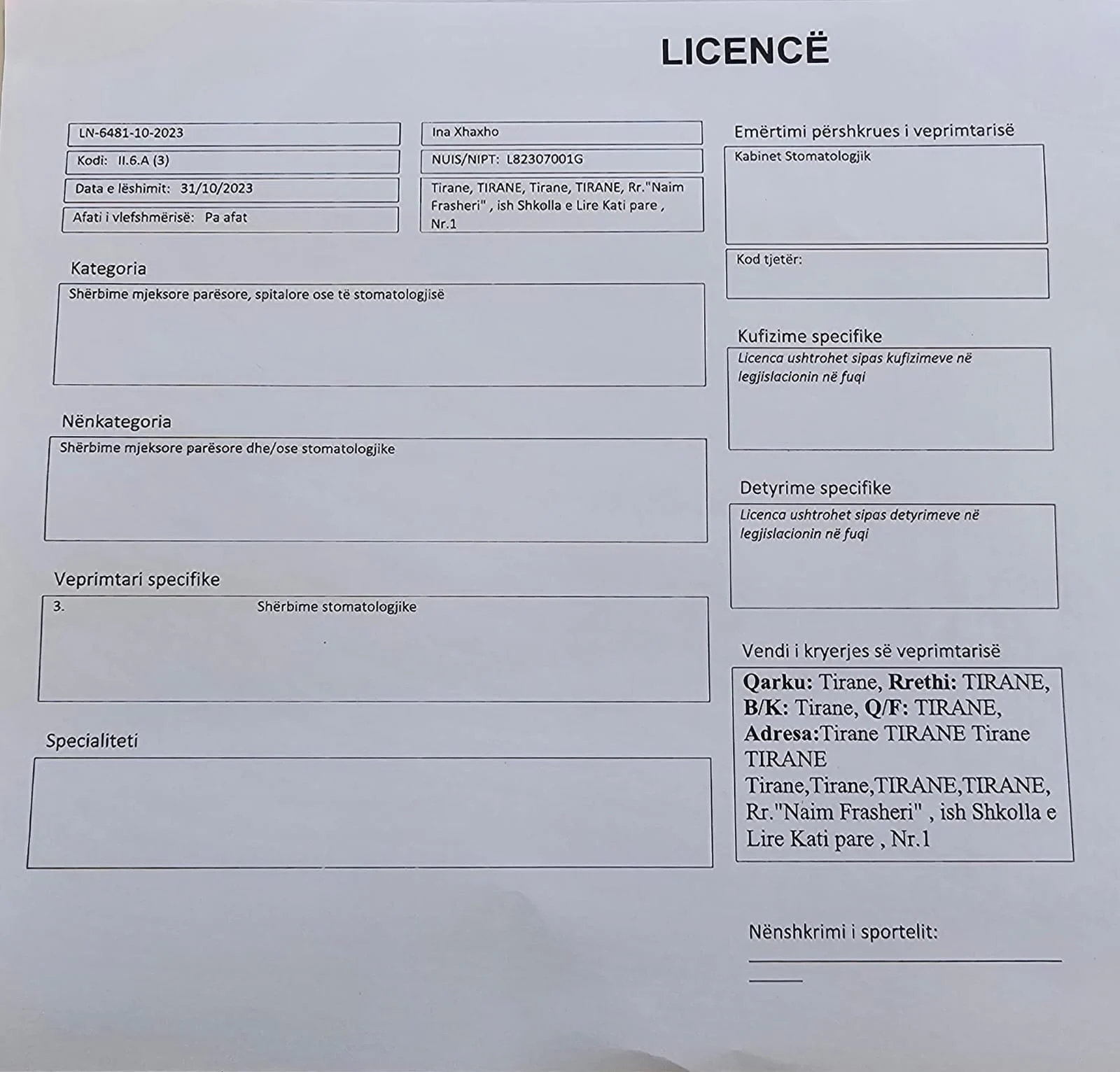3-vjeçari kreu ndërhyrje në klinikën dentare në fund të muajit shtator 2023 dhe ndërroi jetë më 1 tetor, ndërsa në dokumentet vërtetohet se Ina Xhaxho e ka marrë licencën me 31 tetor 2023, një muaj më pas.