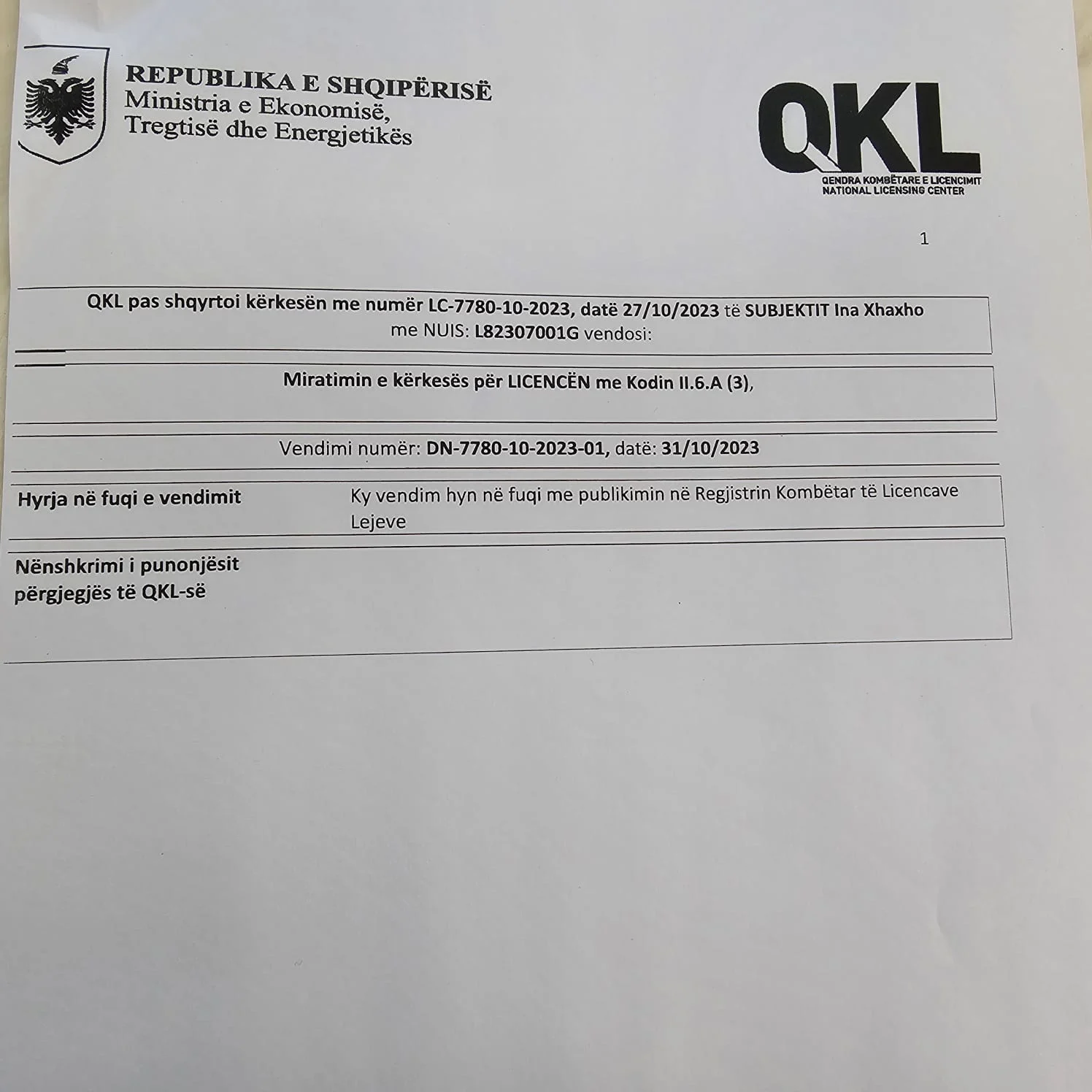 Ina Xhaxho mori licencën e subjektit më 31 tetor 2023, ndërsa ngjarja ka ndodhur në fillim të tetorit.