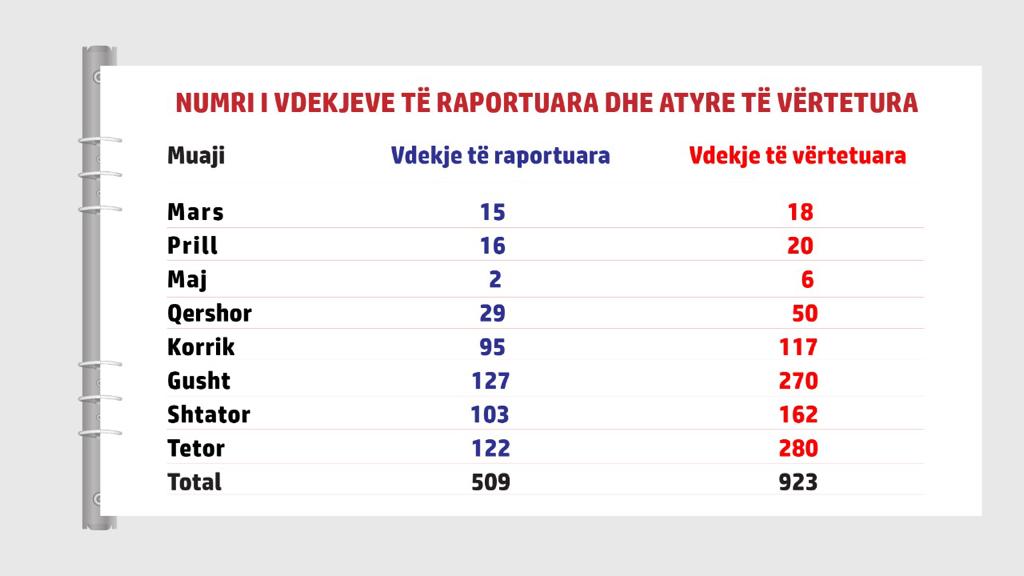 Sipas denoncimit të Bashës, nga marsi deri në tetor, autoritetet kanë raportuar zyrtarisht 509 të vdekur si pasojë e Covid, ndërsa numri real i tyre është 923. Kreu i opozitës akuzoi se manipulimi me shifrat vazhdon edhe përgjatë nëntorit. Ai tha se deri më 17 nëntor, kur ka marrë PD shifrat e fundit, janë regjistruar 315 të vdekur, ndërsa zyrtarisht raportohet 128 më pak se gjysma e tyre.