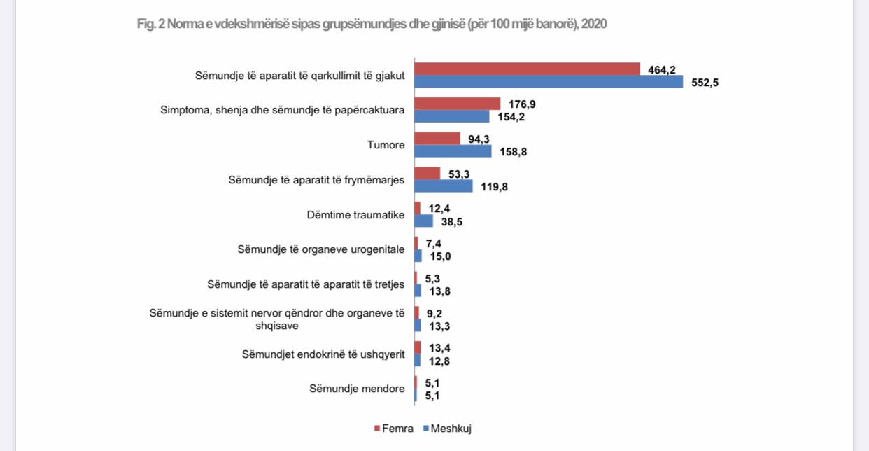 INSTAT raporton se pjesa më e madhe e vdekjeve shtesë në vitin 2020 u justifikuan me diagnozat e sëmundjeve të zemrës dhe të shkaqeve të panjohura.