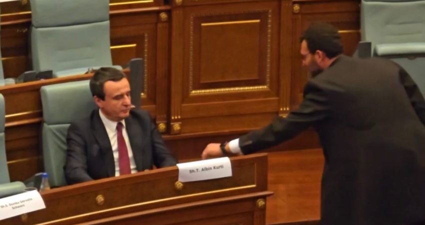 Kryeministri Edi Rama ka shkruar një mesazh në një letër dhe i ka dhënë dikujt nga stafi i Kuvendit që t’ia japë Albin Kurtit, të cilin e kishte disa metra larg.