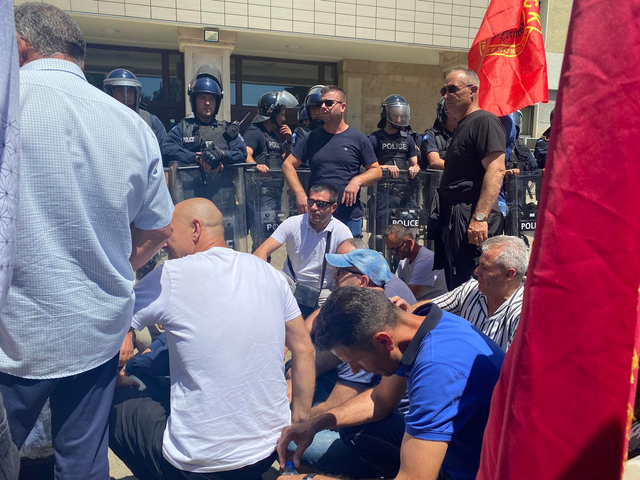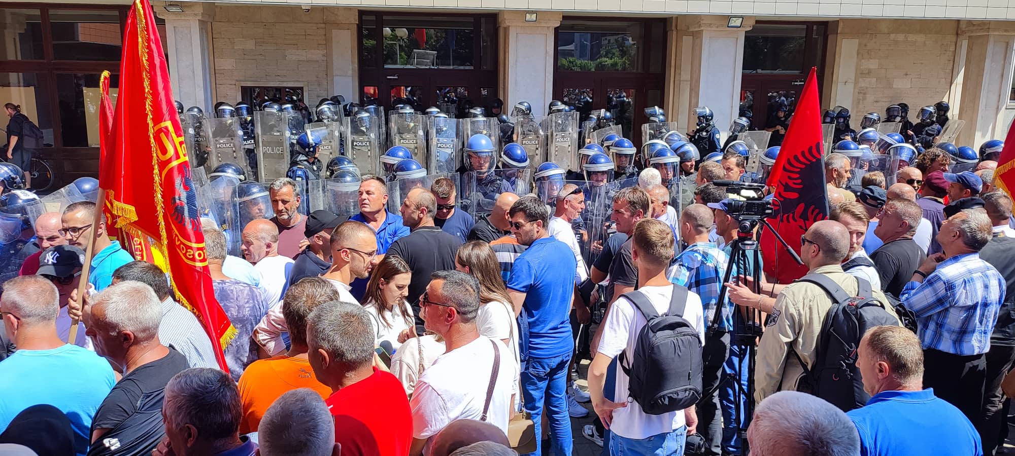 Forcat të shtuara të policisë rrethuan ndërtesën e parlamentit, ndërsa protestuesit kaluan rrethojat e oborrit duke brohoritur kundër projektligjit që nuk përfshinë pensionet e tyre.
